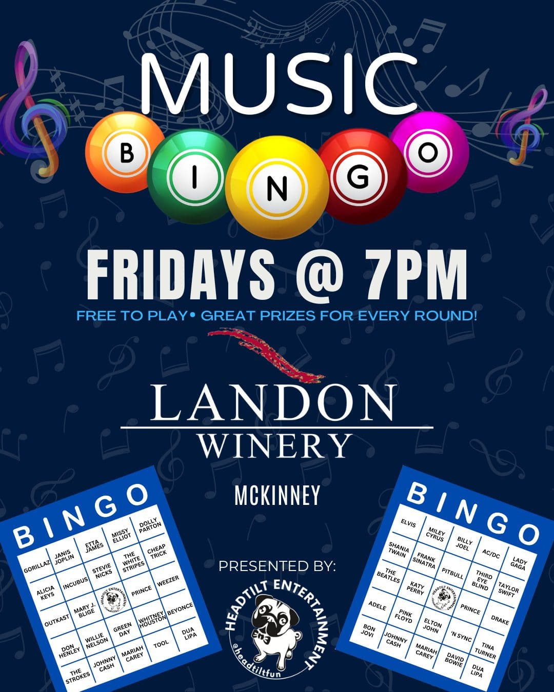 🎶🍷 FRIDAY NIGHT FUN = MUSIC BINGO AT LANDON WINERY MCKINNEY! 🍷🎶